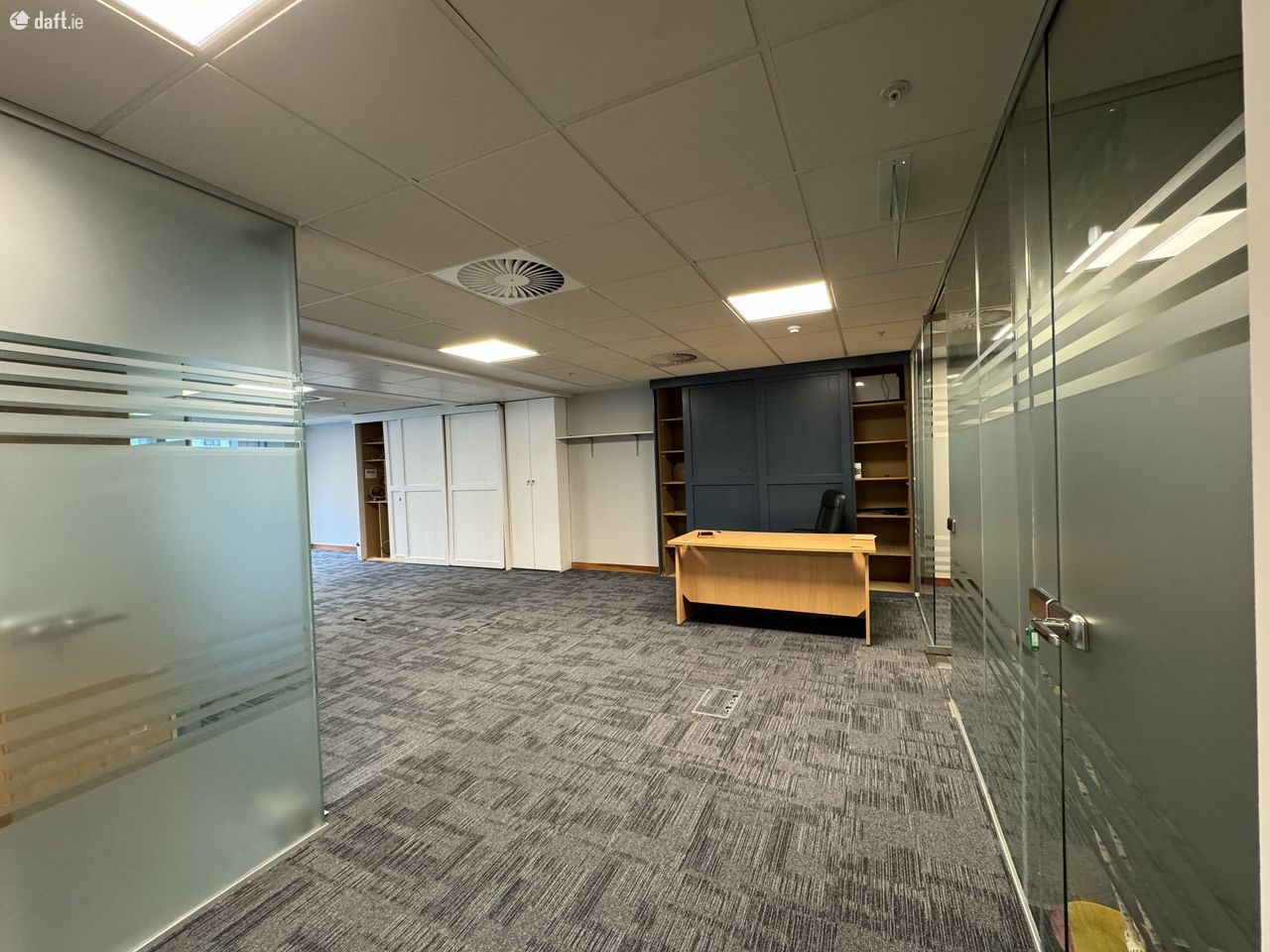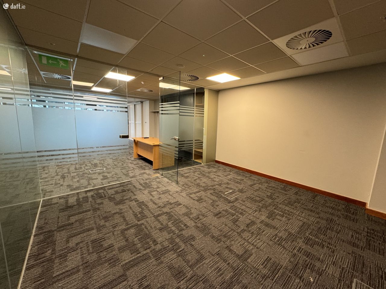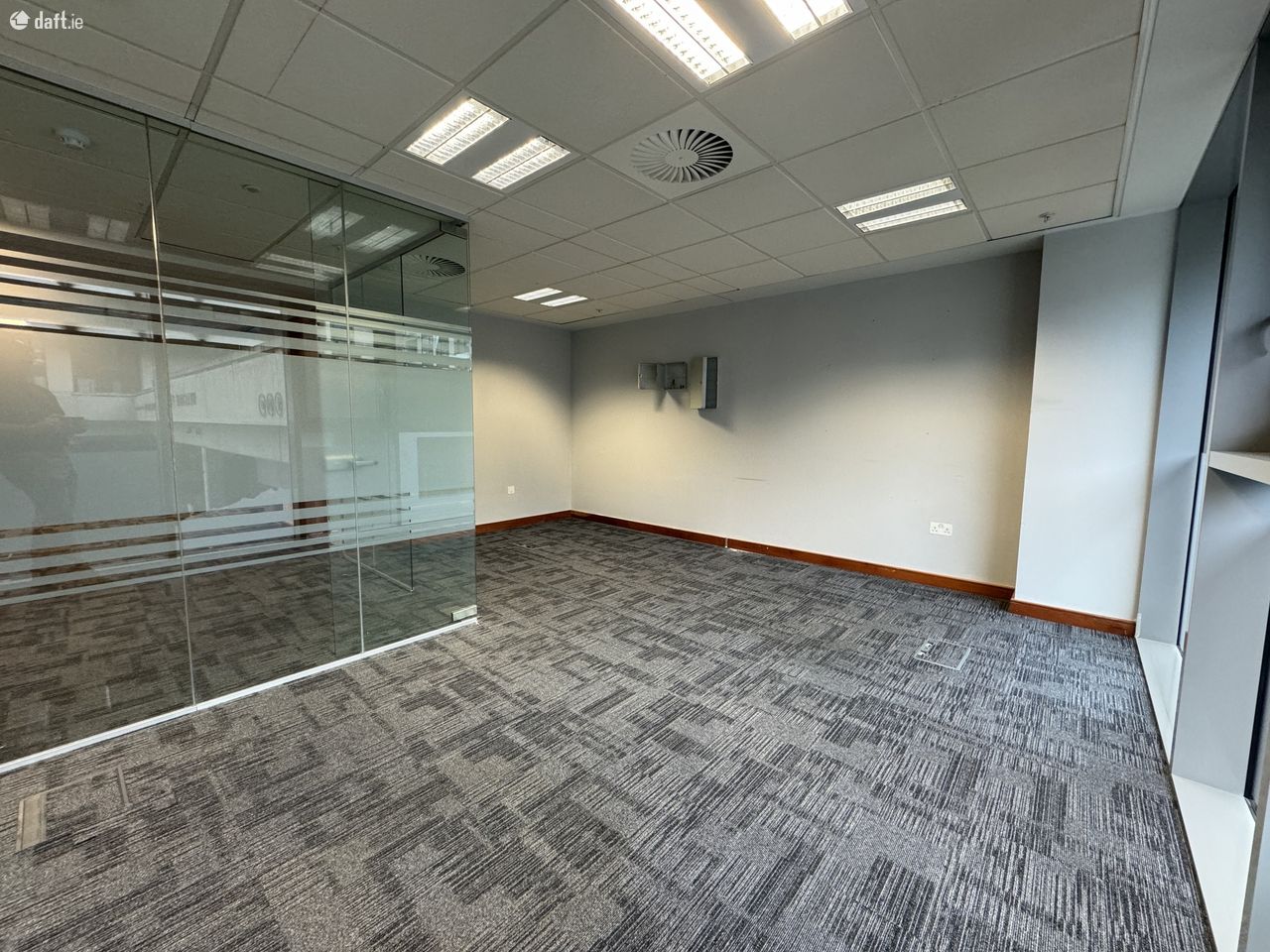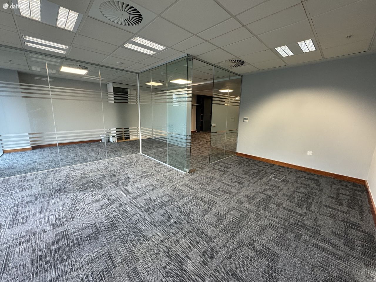 The office itself is openplan with glazed partitioning. Convienent floorboxes provide data & power. Air conditioned with fully fitted kitchen and accesible restroom. Secure with intruder alarm and controlled entry with maglock on door. Fire alarm.