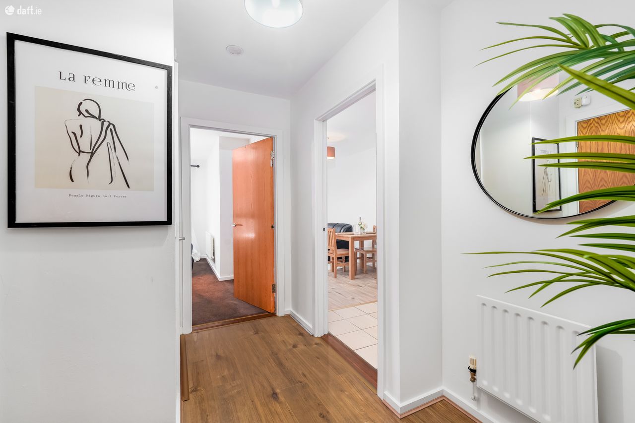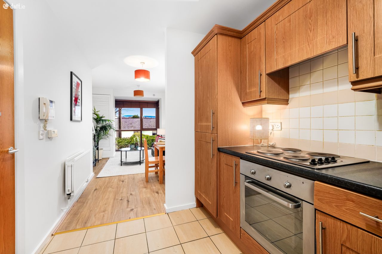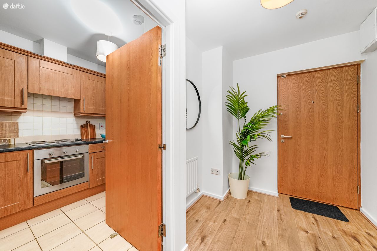 This well-designed apartment comprises, in brief, an entrance hall, an open-plan living and dining area, a fully fitted kitchen, a double bedroom with built-in wardrobes, and a tiled bathroom.