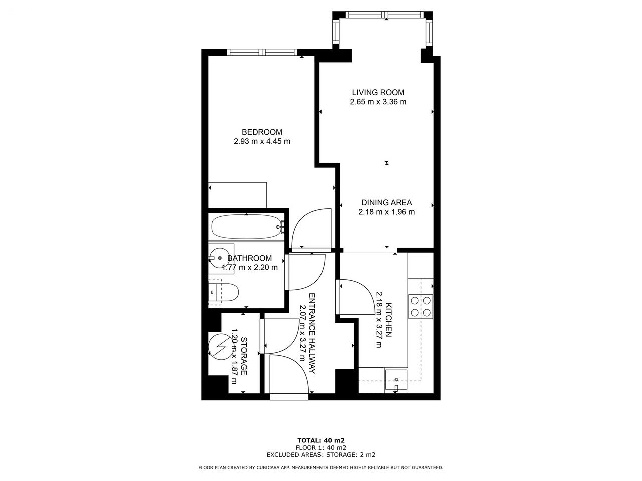 - 1: Approx 430sq.ft. (40 sq.m)